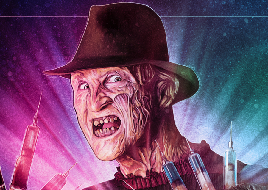 Poster art tribute to the horror sequel, A Nightmare On Elm Street 3: Dream Warriors created for Hero Complex Gallery in Los Angeles.