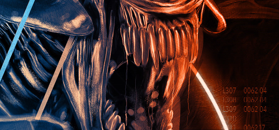 Poster illustration tribute to James Cameron's movie classic, Aliens. It was done as part of the Sci-Fi Noir gallery show organised by the Time Beards team that took place at Heron Arts, San Francisco In June 2017.