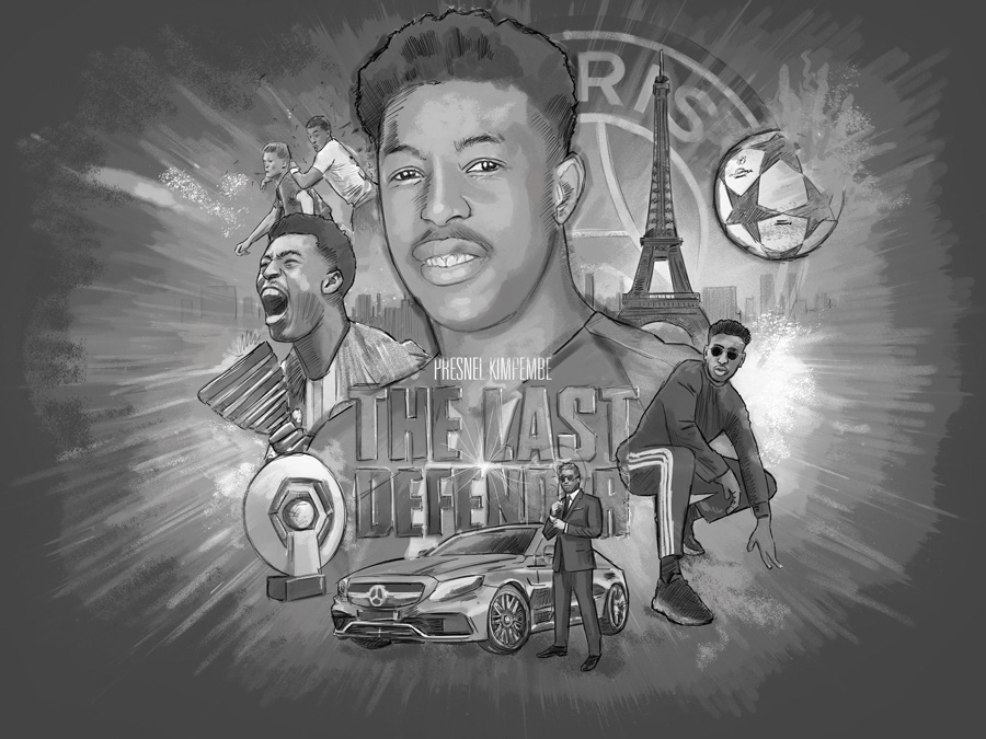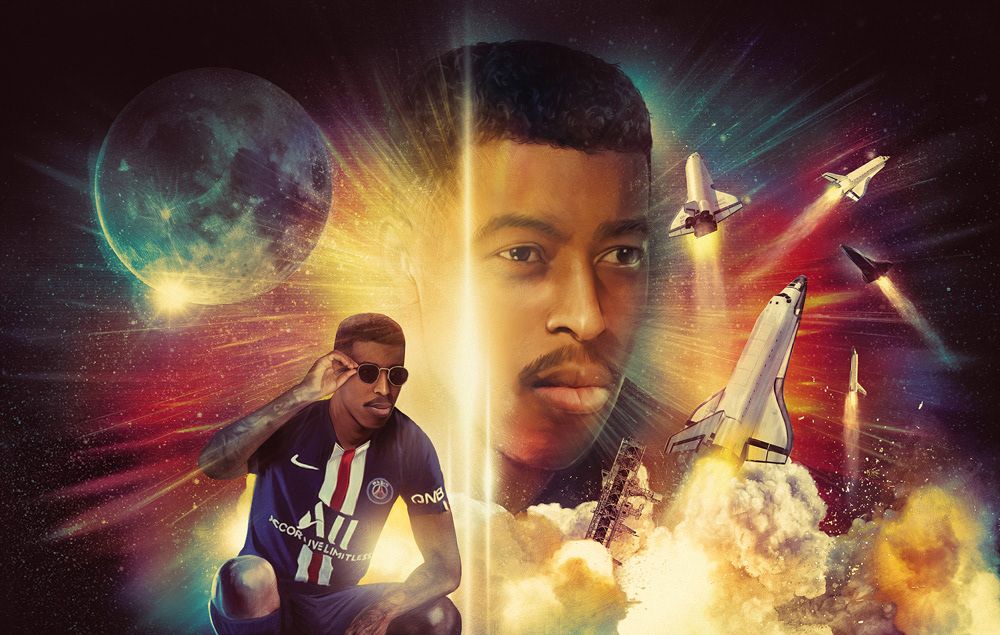 Commissioned illustration that was created for an animated sequence in a commercial for French bank, Boursorama created by Paris-based agency, Firm Studio. The illustration was used as part of a pinball machine design which features PSG footballer Presnel Kimpembe who magically comes to life.