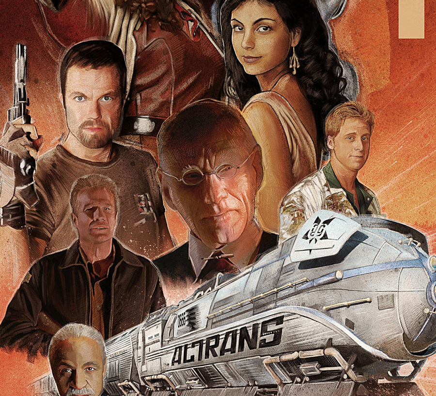 An artwork piece created for the Firefly Artbook published by Printed In Blood and Titan Books. The book is a celebration of the short-lived but much loved sci-fi/western TV show created by Joss Whedon. This particular piece was a tribute to the episode, The Train Job.