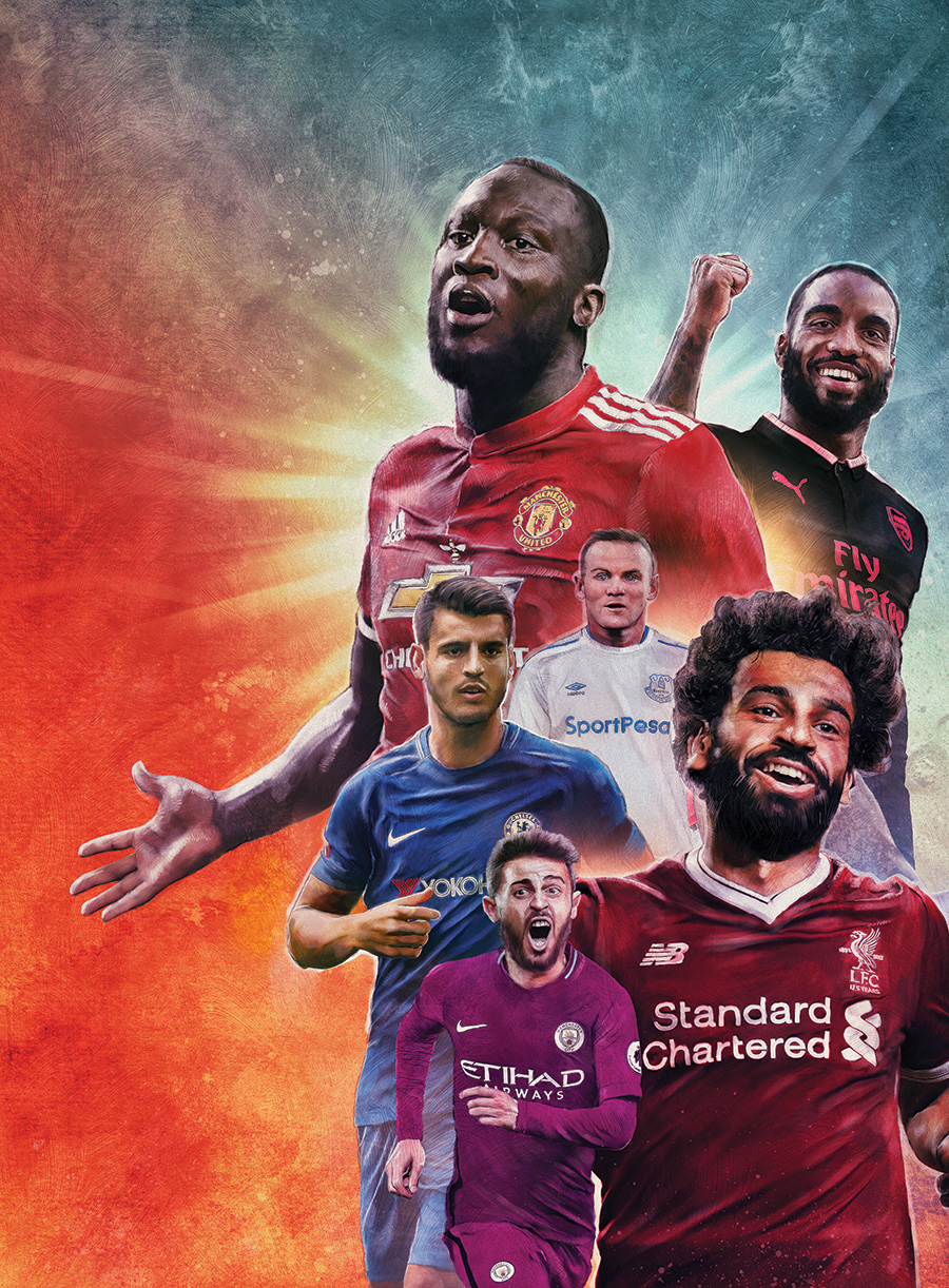 Front cover illustration for football magazine, Four Four Two. The aim of the cover illustration was to highlight the more high profile signings in the Premier League in the 2017/2018 season.
