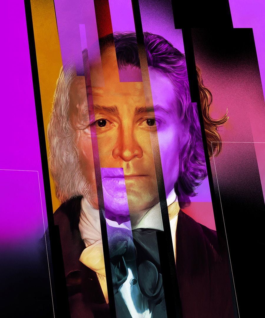 Illustration created for Arena Stage, Washington to promote JQA - a new political play based on the life of American president John Quincy Adams.