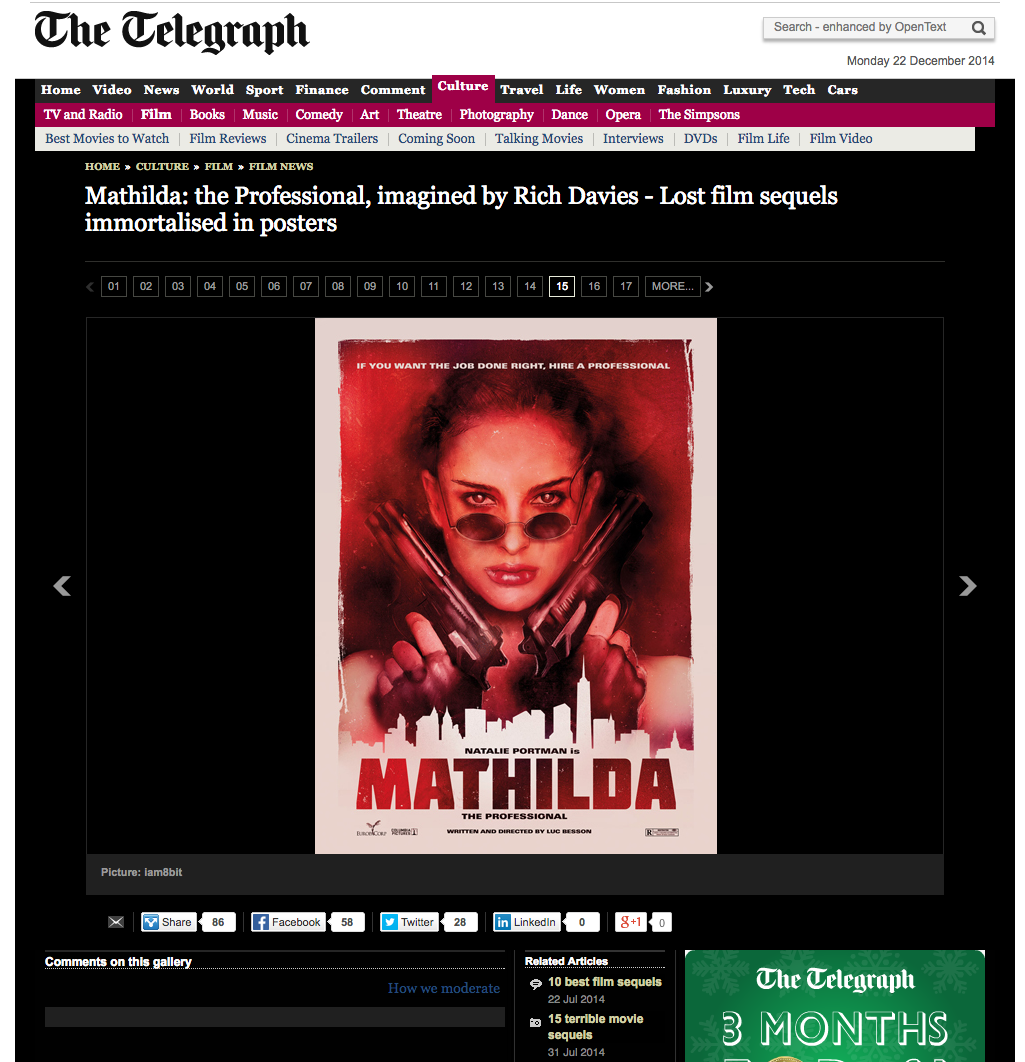 This was a piece for the SEQUEL show at IAM8BIT gallery, Los Angeles. The show's theme involved creating poster artwork for movie sequels that have never seen the light of day. This was created as a sequel to the Luc Besson film, Leon (or The Professional as it was known in the U.S).