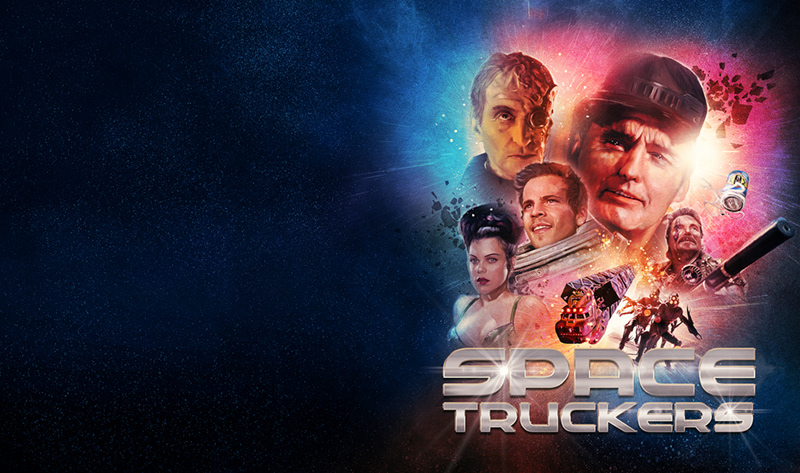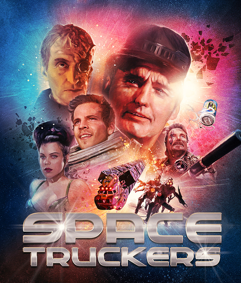 Cover illustration created for the 2018 blu-ray release of Space Truckers for Second Sight Films.