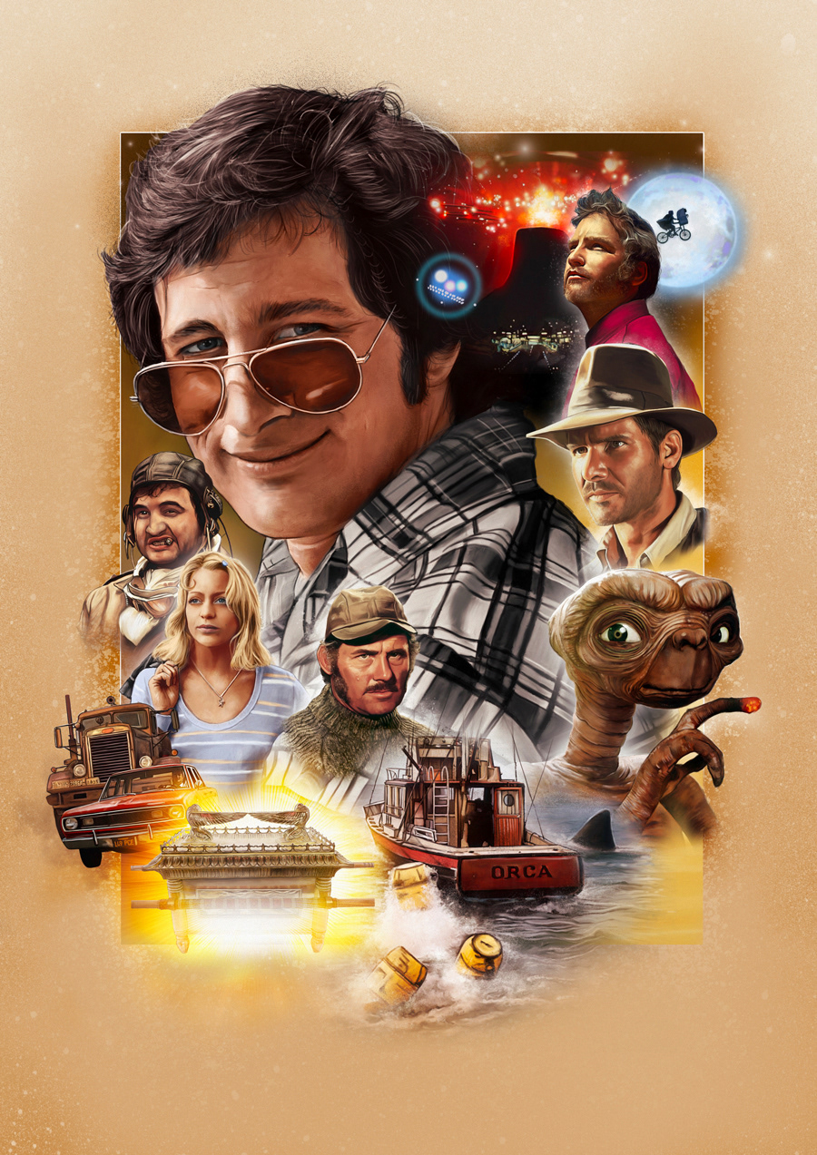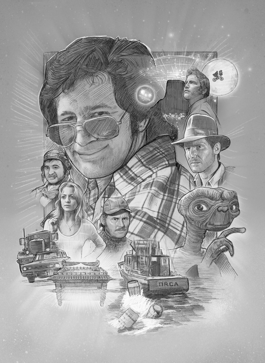 Front cover illustration commission for Spielberg: The First Ten Years by Laurent Bouzereau and published by Insight Editions.