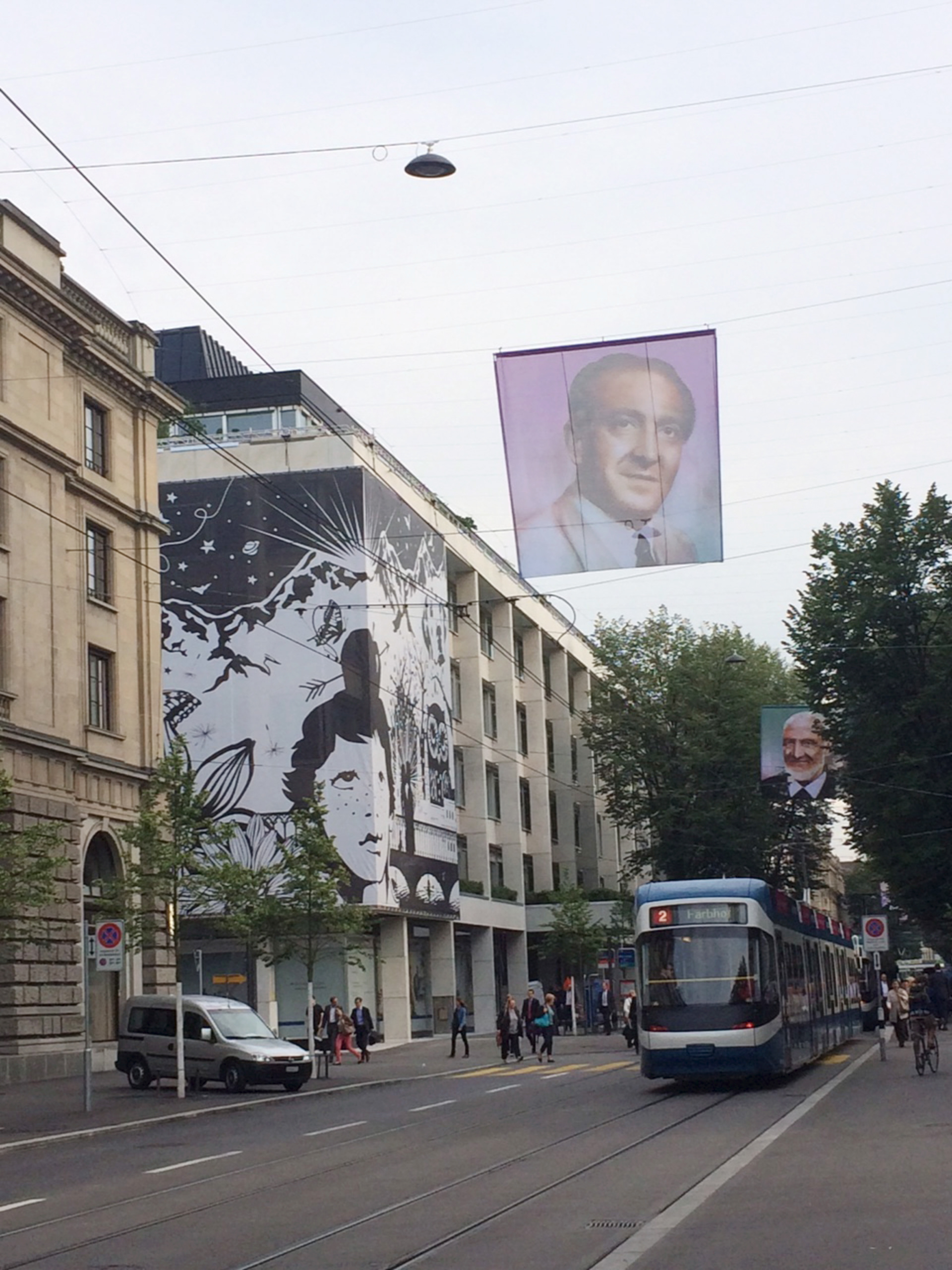 This was a series of portraits done for Zurich's unique open air summer arts festival, Aufsehen. The portraits were reproduced onto large flags and flown throughout the city's famous Bahnhofstrasse. The 12 portraits feature significant historical figures who have contributed to the city of Zurich over the last 100 years or so. aufsehen-zueri.ch/portfolio-item/historic-faces